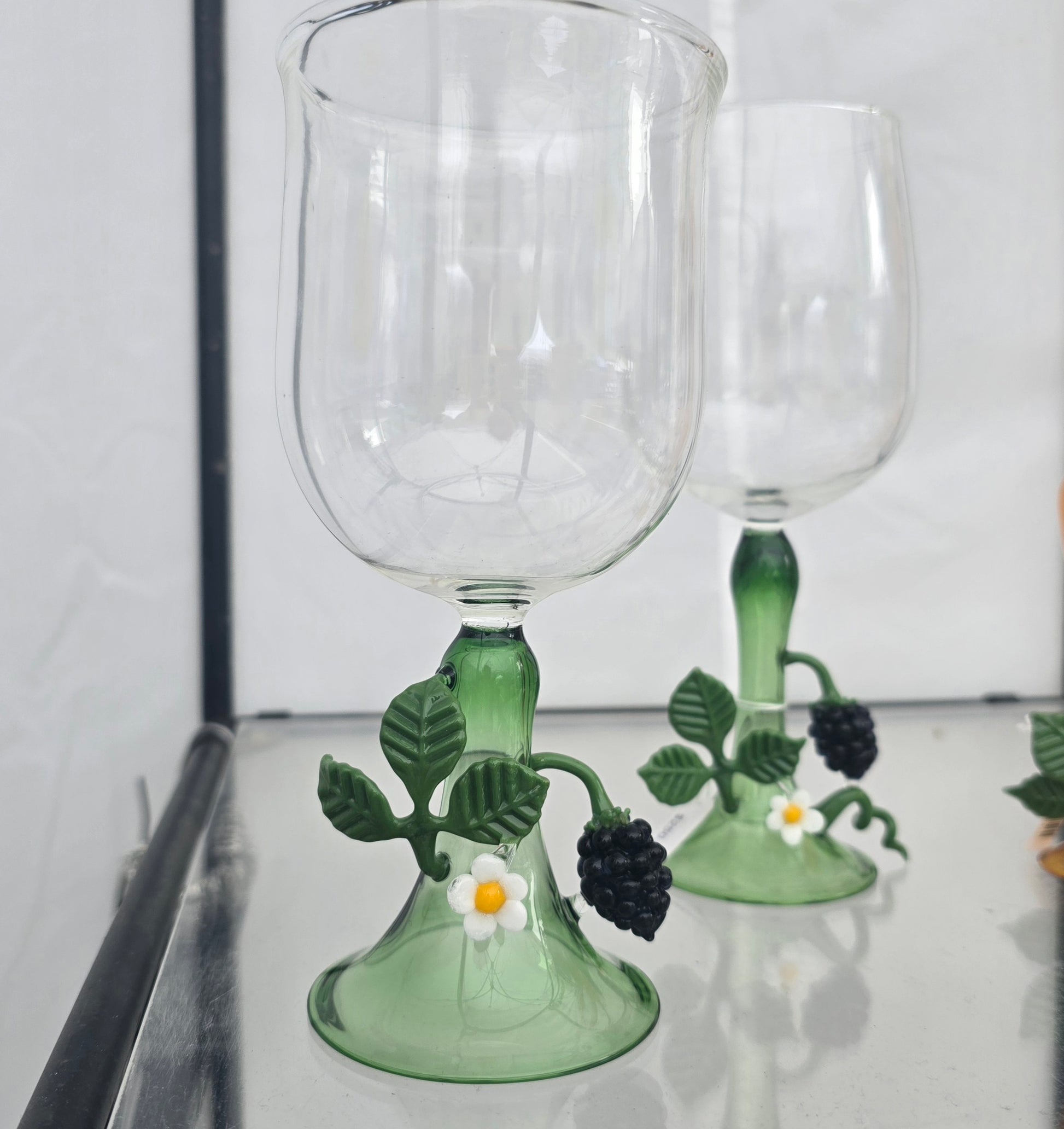 Celebrate the 2025 Bremerton Blackberry Festival this charming Blackberry goblet wine glass. Crafted from handblown borosilicate glass, it boasts a delicate cup and a beautifully blown foot. Adorned with whimsical glass details of a luscious blackberry, berry flower, leaf, and vine, it's perfect for adding a playful touch to your sipping experience.