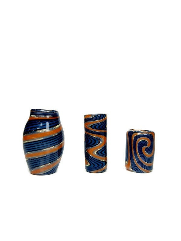 Blue & Orange Glass Dread Bead / CUSTOM Style and sizes Options / 4-16mm Bead Holes / Spiral - Wig wag - Twist / Made To Order