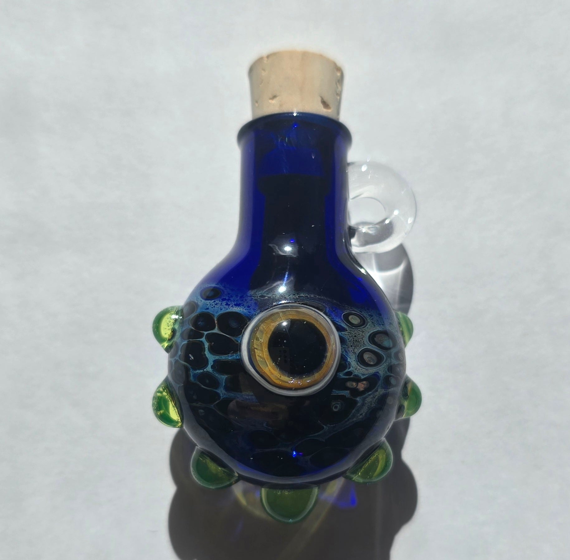 Eyeball Monster Potion Bottle Necklace, Cobalt and UV Dots