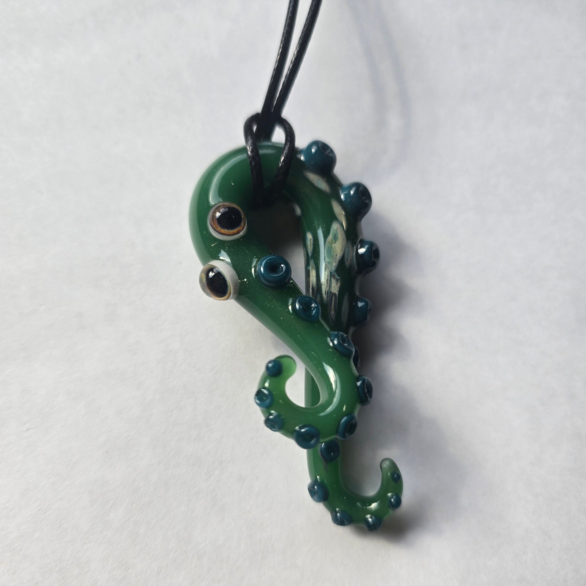 Eyeball tentacle monster pendants, meticulously crafted from borosilicate glass, are available for purchase. Each pendant comes with an 18-inch necklace cord. These unique pieces are handmade in Bremerton, Washington.