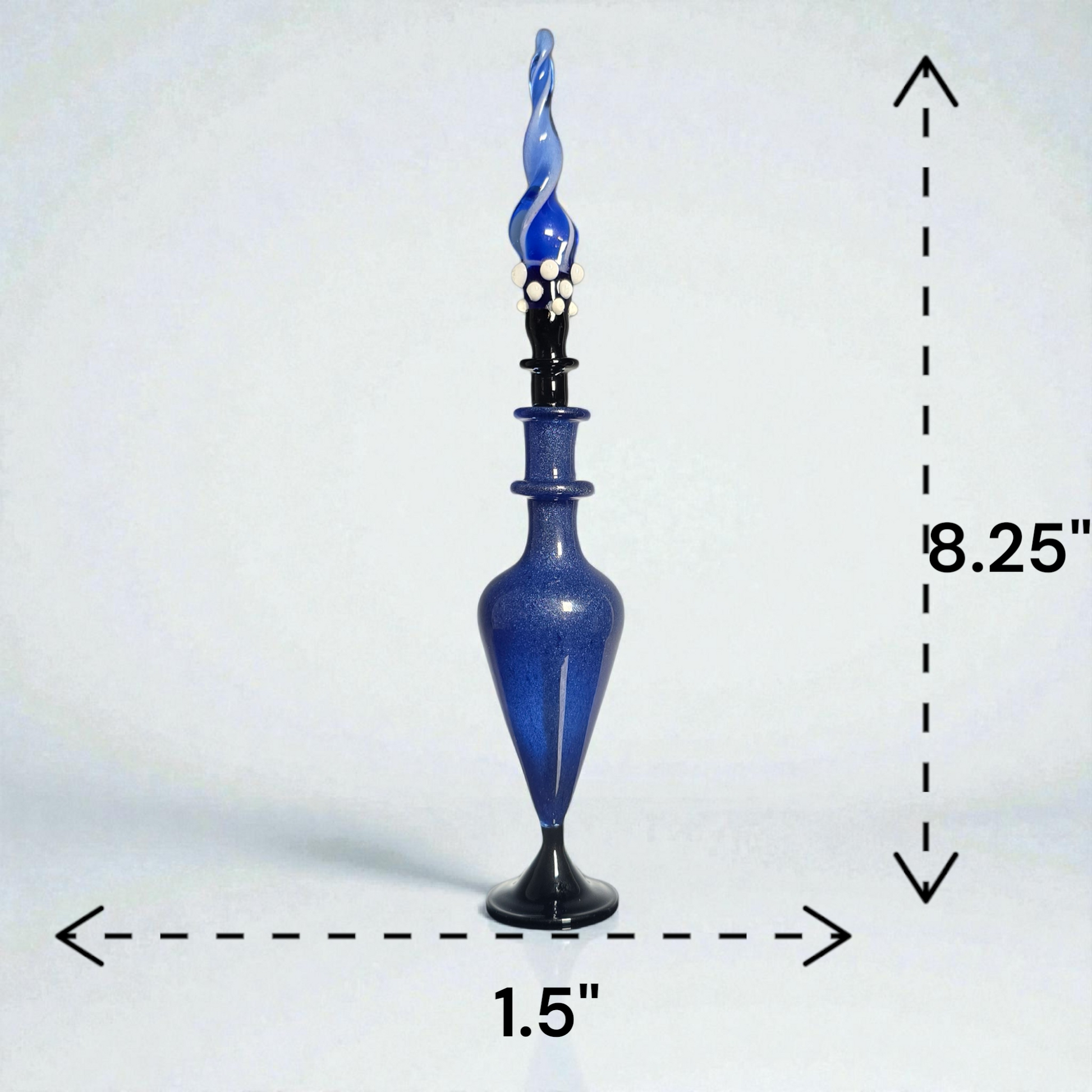 Elevate your magic with this hand blown glass perfume bottle, crafted for those who love witchy aesthetics, fantasy flair, and enchanting Ren Faire vibes. Each bottle is individually shaped in the flame, creating a one-of-a-kind vessel perfect for holding perfume, essential oils, ritual blends, or magical potions.