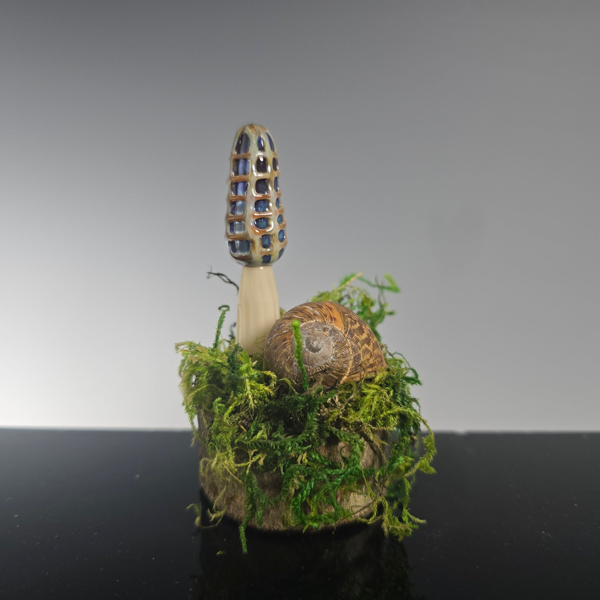 Handmade in the pacific northwest, everlasting mushrooms, this mushroom is a gorgeous addition to your home. The stem and cap are made with borosilicate glass, the moss and log are real and from the pacific northwest, which gives it another layer of magic.