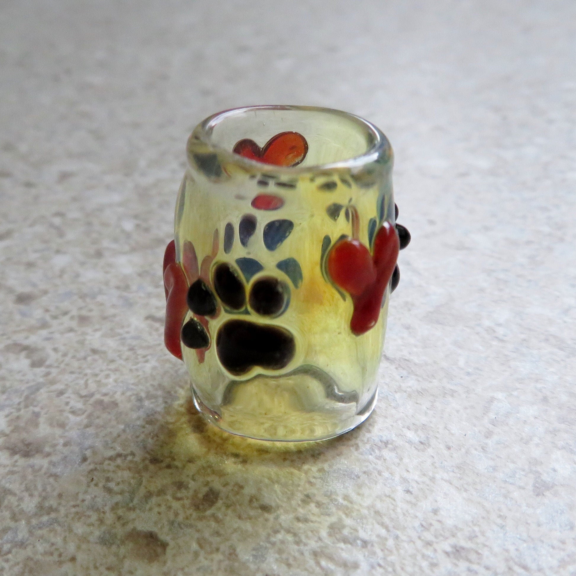Paw Print with Hearts Glass Dread Bead, CUSTOM Bead Hole Sizes 4-16mm