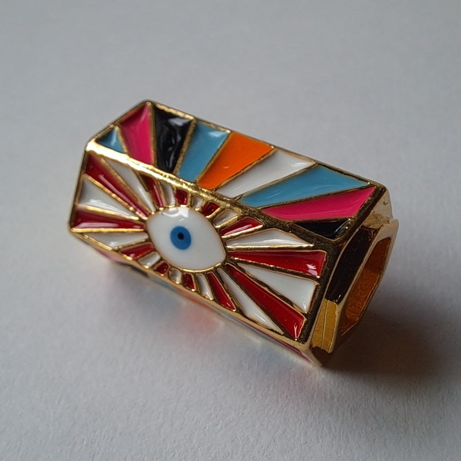 Red and White Evil Eye Dreadlock Bead // 7mm Beads Hole // Psychedelic Beads for Dreadlocks, Dread Beads, metal dread bead